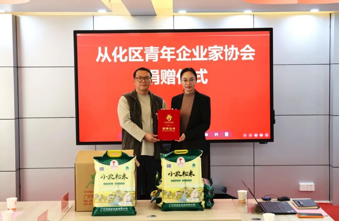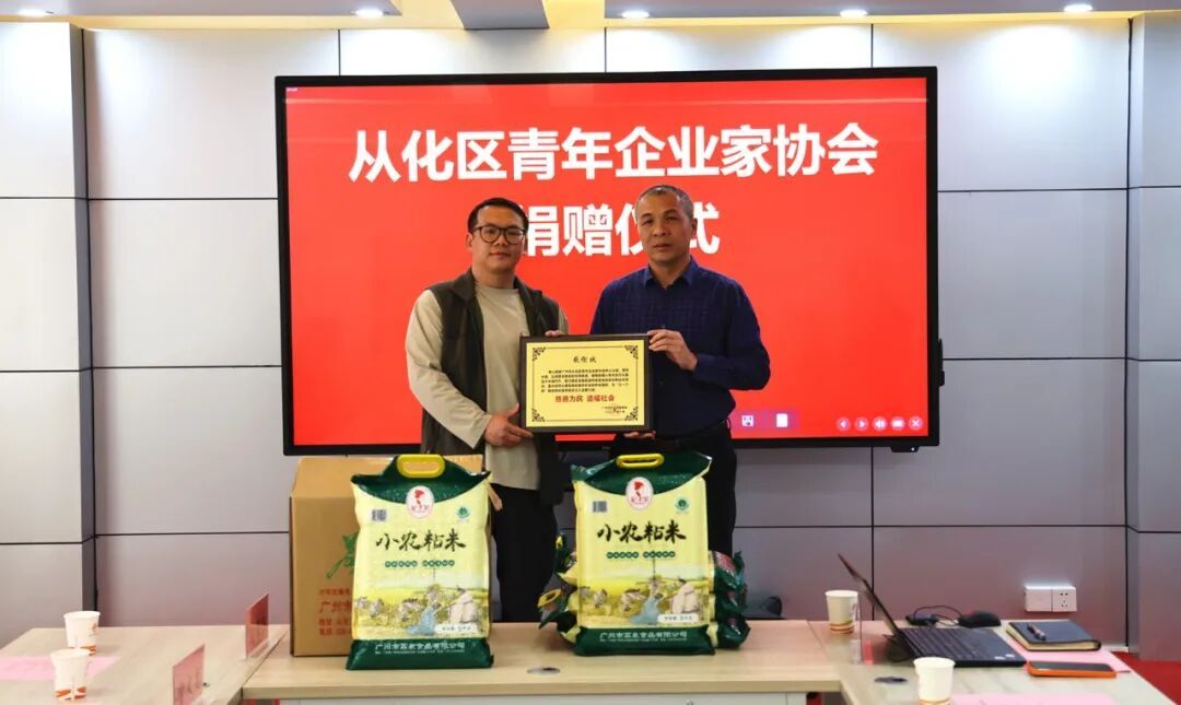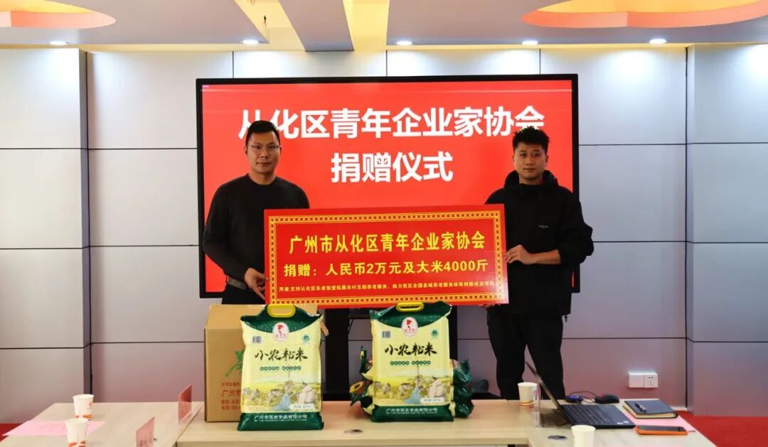 当天下午,在区工商联的协调下,区青年企业家协会积极践行“致富思源、回馈社会”的理念,捐赠大米4000斤和2万元分配给江埔街锦一村、良口镇北溪村、吕田镇三村村、鳌头镇帝田村、鳌头镇西塘村的五个长者饭堂,用实际行动带动更多青年企业家加入公益行列,弘扬慈善精神。随后,区慈善会向区青年企业家协会颁发捐赠证书和牌匾。